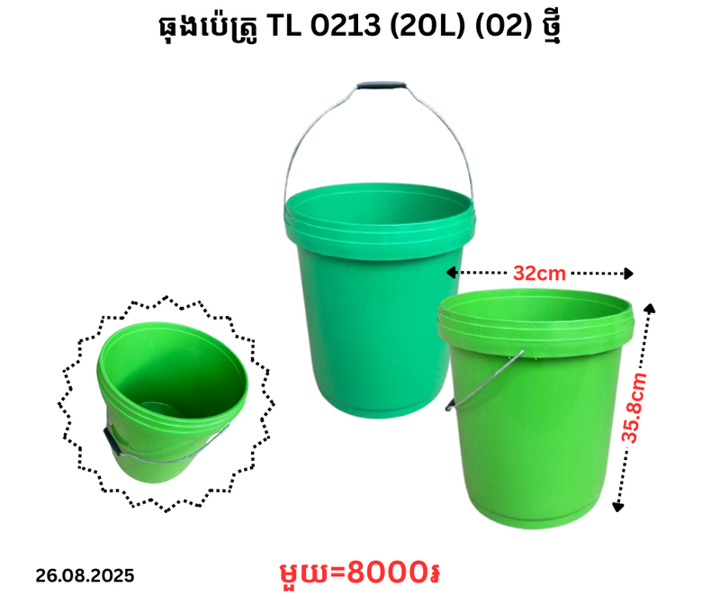 ធុងប៉េត្រូ TL 0213 (20L) (02) ថ្មី November 21, 2025 Posted in 8000, TL, ធុងប៉េត្រូ, ធុងប៉េត្រូ TL Factory Code : 0213