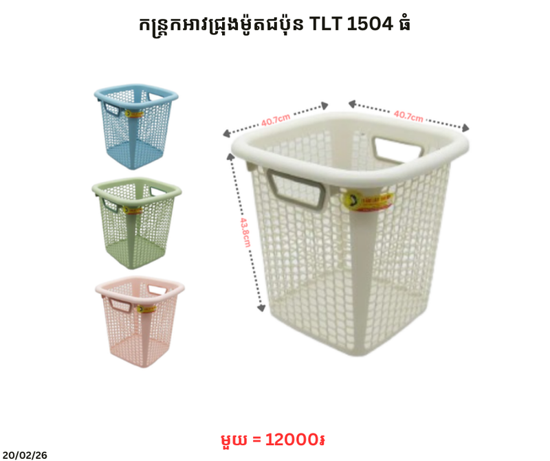 កន្ត្រកអាវជ្រុងម៉ូតជប៉ុន TLT 1504 ធំ December 21, 2025 Posted in 12000, TLT, កន្ត្រកអាវ, កន្ត្រកអាវ TLT, កន្ត្រកអាវជ្រុង, កន្ត្រកអាវជ្រុងម៉ូតជប៉ុន តម្លៃ: 12000 ៛Barcode: P0007962 | Factory: