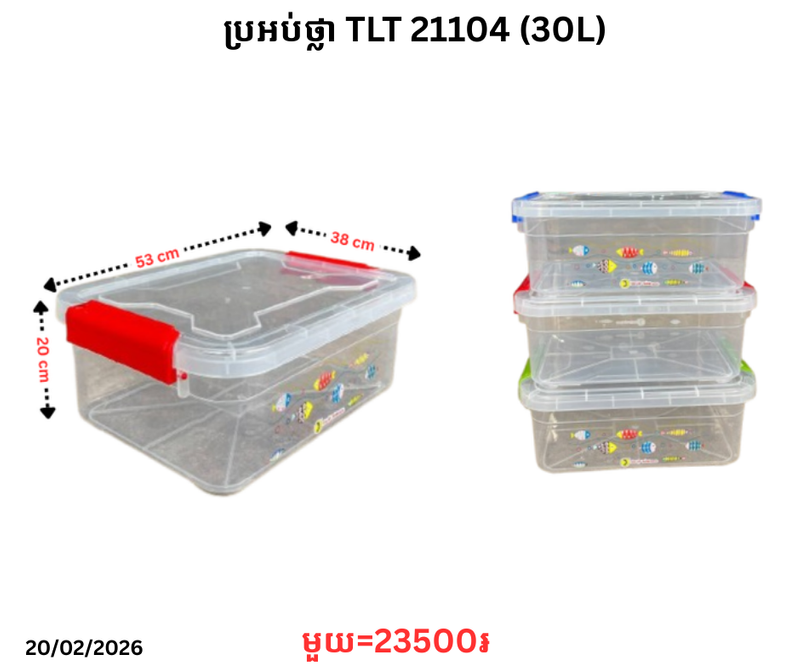 ប្រអប់ថ្លា TLT 21104 (30L) November 21, 2025 Posted in 23500, TLT, ប្រអប់, ប្រអប់ថ្លា, ប្រអប់ថ្លា TLT, ប្រអប់ម្ហូប Product Code : P0008051