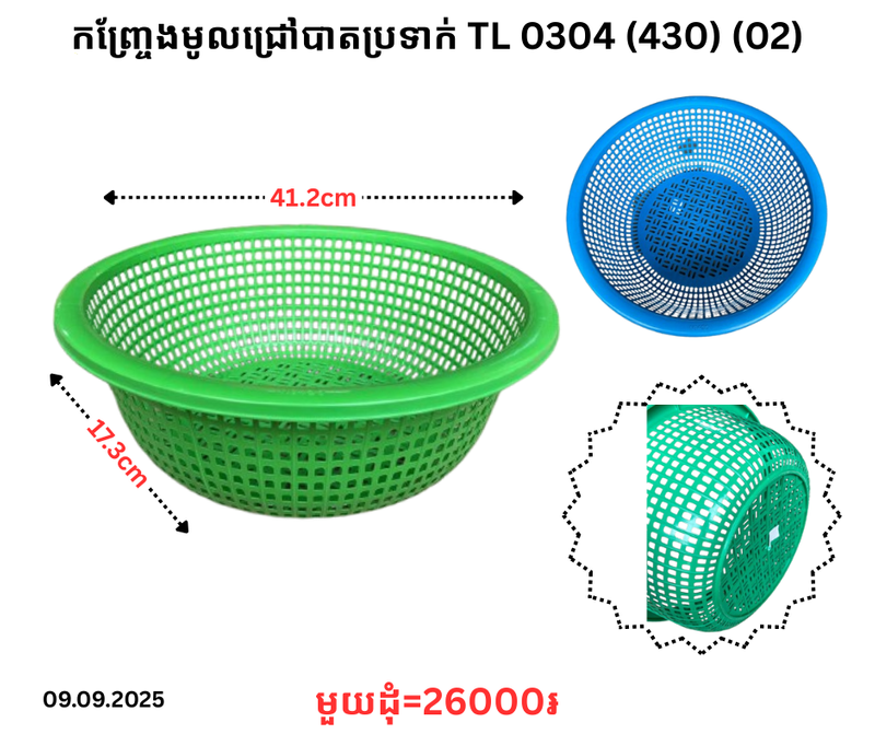 កញ្ច្រែងមូលជ្រៅបាតប្រទាក់ TL 0304 (430) (02) December 30, 2025 Posted in 26000, TL, កញ្ច្រែងមូល, កញ្ច្រែងមូលជ្រៅបាតប្រទាក់TL Factory Code : 0304 Product Code : P0008449