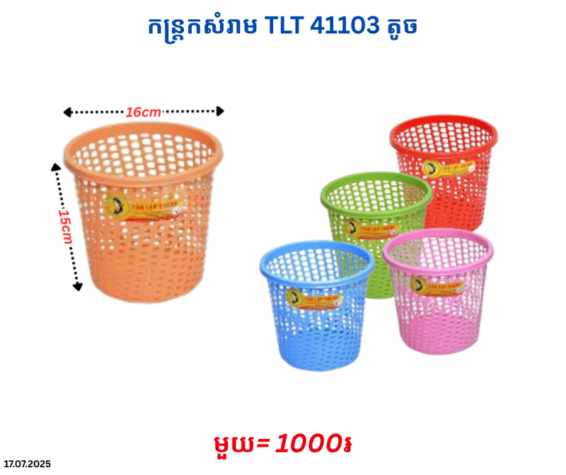 កន្ត្រកសំរាម TLT 41103 តូច November 17, 2025 Posted in 1000, TLT, កន្ត្រកសំរាម, កន្ត្រកសំរាម TLT Product Code : P0007901