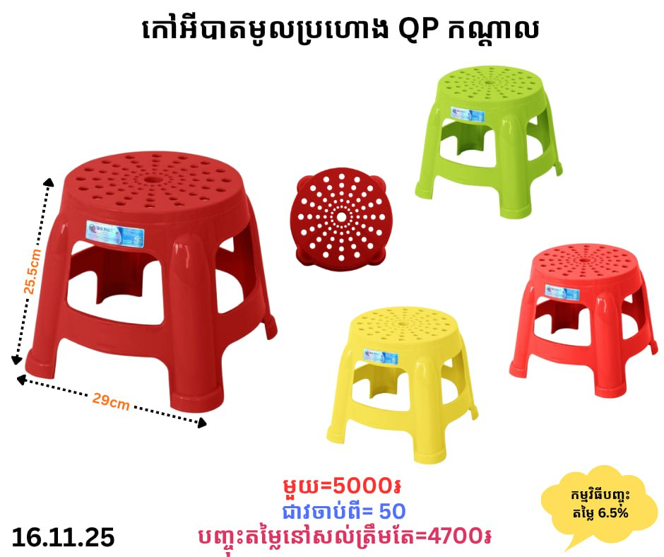 កៅអីបាតមូលប្រហោង QP កណ្ដាល January 3, 2026 Posted in 4700, QP, កៅអី, កៅអីកណ្ដាល, កៅអីបាតមូល QP, ទំនិញថ្មី Product Code : P0008595