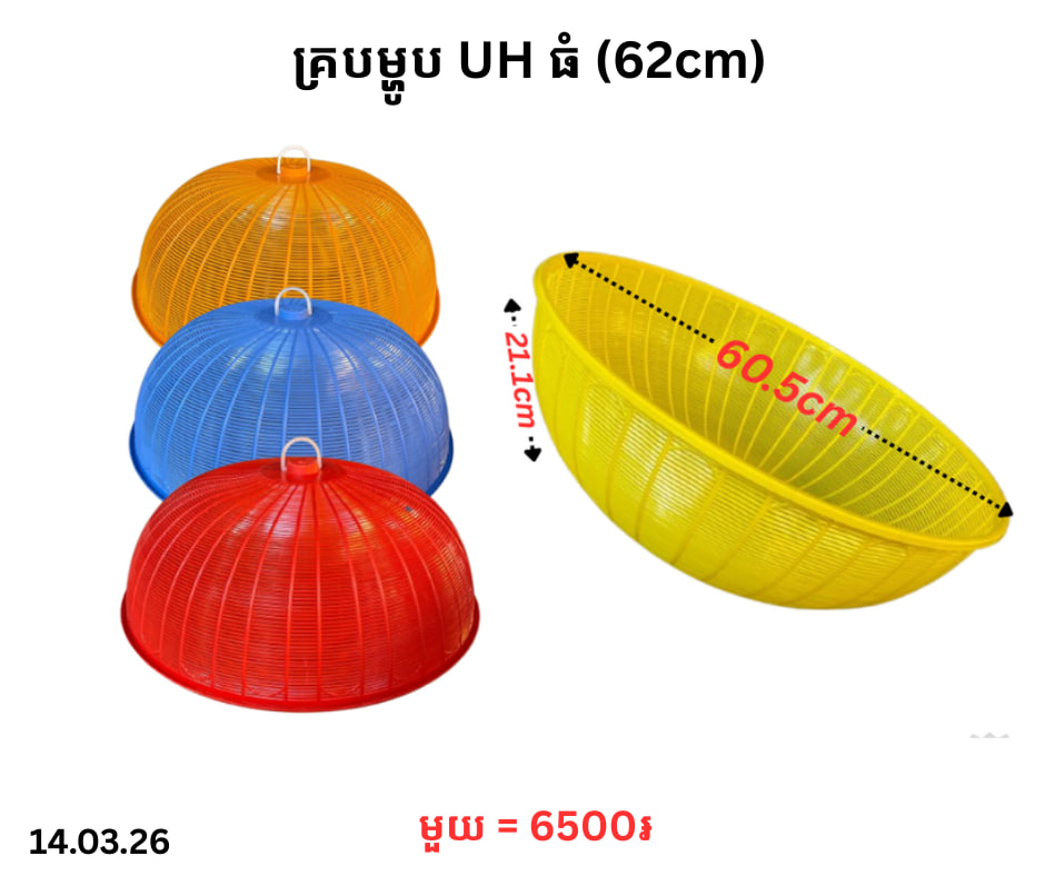 គ្របម្ហូប UH ធំ (62cm) January 5, 2026 Posted in 6500, UH, គ្របម្ហូប, គ្របម្ហូប UH តម្លៃ: 6500 ៛ Barcode: P0004183 | Factory: