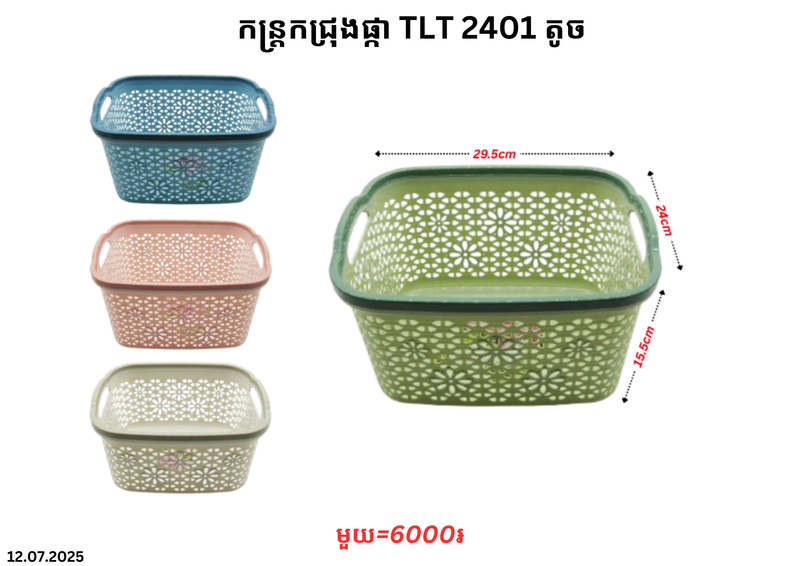 កន្ត្រកជ្រុងផ្កា TLT 2401 តូច November 11, 2025 Posted in TLT, កន្ត្រកជ្រុងផ្កា, កន្ត្រកជ្រុងផ្កាTLT តម្លៃ: 6000 ៛ Barcode: P0007956 | Factory: