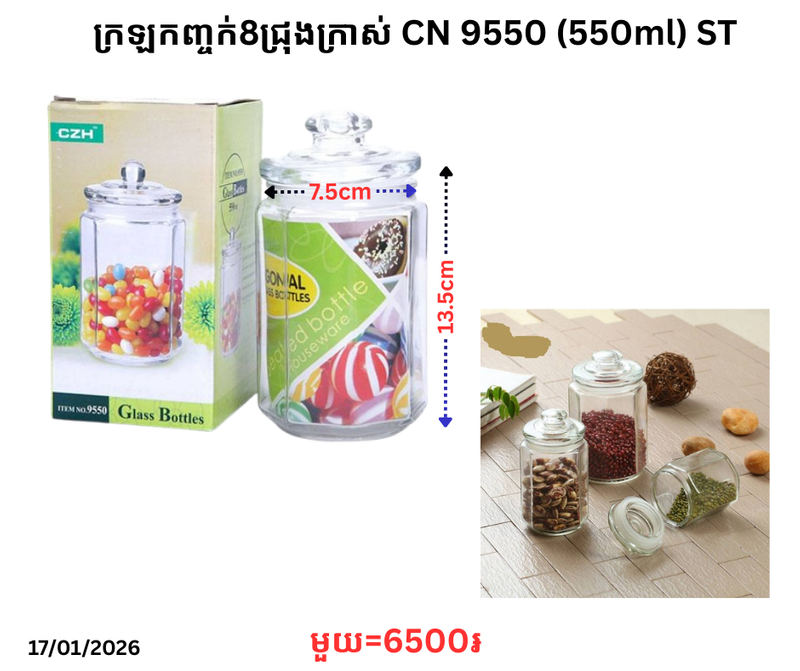 ក្រឡកញ្ចក់8ជ្រុងក្រាស់ CN 9550 (550ml) ST January 22, 2026 Posted in 6500, CN, ក្រឡ, ក្រឡកញ្ចក់, ក្រឡកញ្ចក់8ជ្រុង, ក្រឡកញ្ចក់8ជ្រុងក្រាស់ CN, ទំនិញថ្មី Barcode : 95507