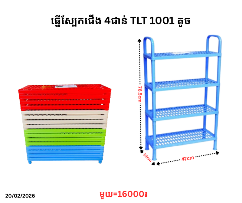 ធ្នើស្បែកជើង 4ជាន់ TLT 1001 តូច February 25, 2026 Posted in 16000, TLT, ទំនិញថ្មី, ធ្នើស្បែកជើង, ធ្នើស្បែកជើង TLT