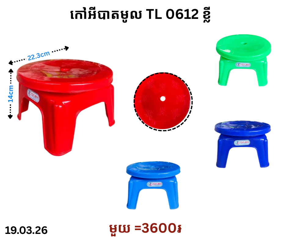 កៅអីបាតមូល TL 0612 ខ្លី March 19, 2026 Posted in 3600, TL, កៅអី, កៅអីខ្លី, កៅអីខ្លី TL, កៅអីបាតមូល, កៅអីបាតមូល TL តម្លៃ: 3600 ៛ Barcode: 8936082383231 | Factory: