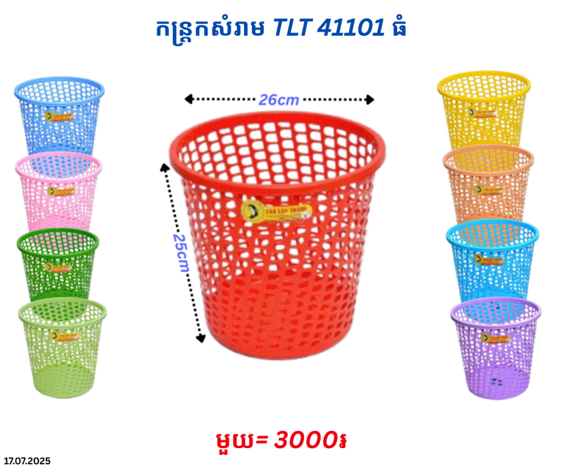 កន្ត្រកសំរាម TLT 41101 ធំ November 17, 2025 Posted in 3000, TLT, កន្ត្រកសំរាម, កន្ត្រកសំរាម TLT Product Code : P0007903
