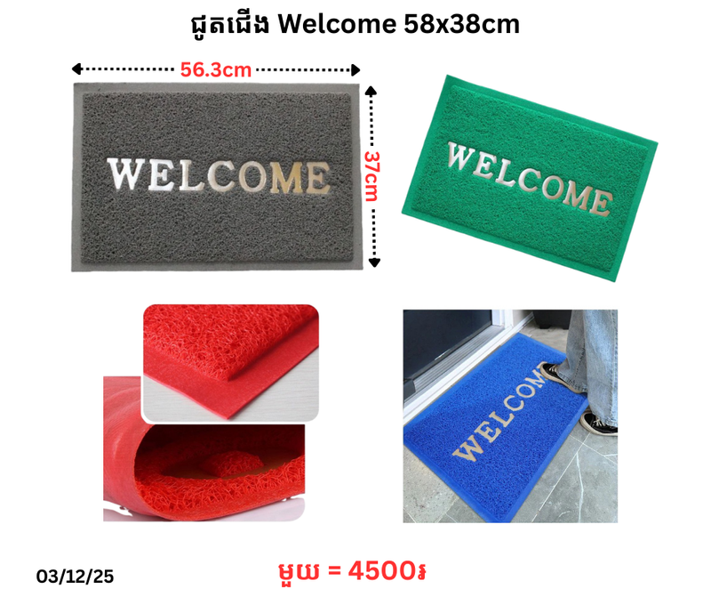 ក្រណាត់ជូតជើង Welcome 58x38cm December 20, 2025 Posted in 4500, CN, ក្រណាត់ជូតជើង, ក្រណាត់ជូតជើង Welcome