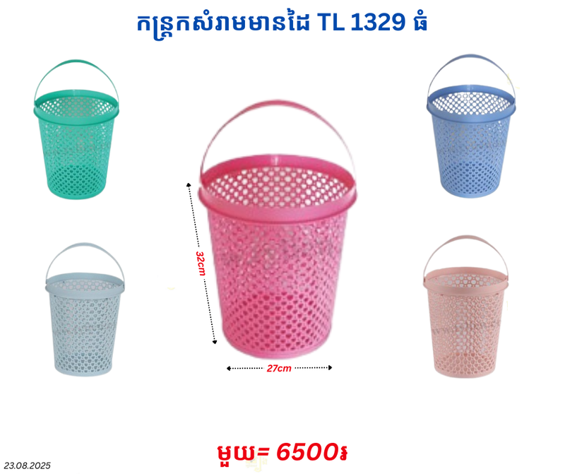 កន្ត្រកសំរាមមានដៃ TL 1329 ធំ November 17, 2025 Posted in 6500, TL, កន្ត្រកសំរាម, កន្ត្រកសំរាមមានដៃTL Factory Code : 1329 Product Code : P0008338